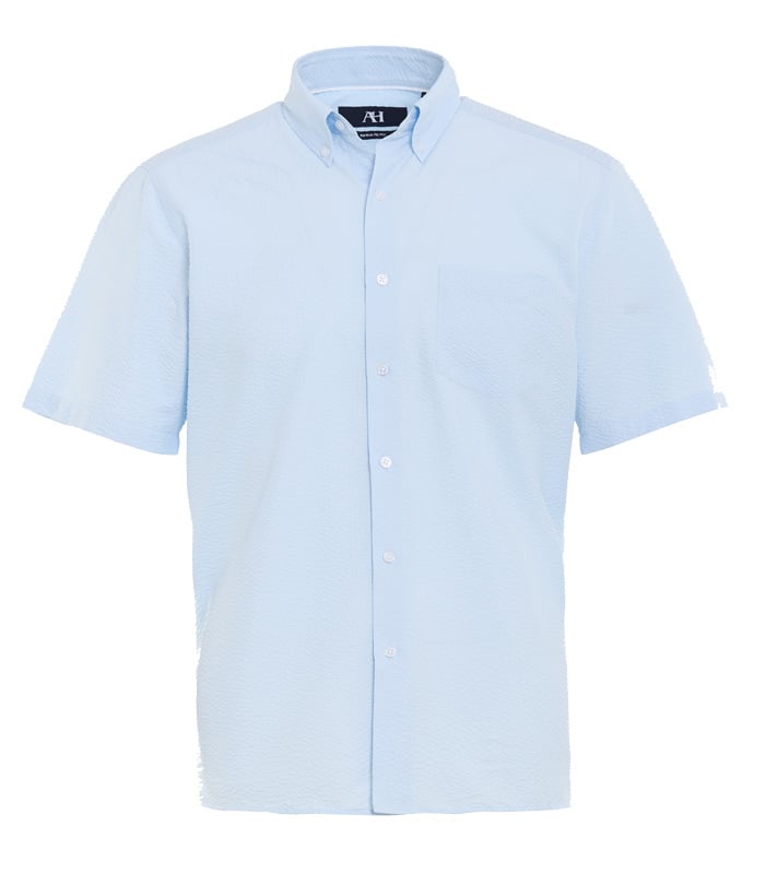 From American Heritage comes this great classic for the summer, a solid white short sleeve seersucker shirt.
