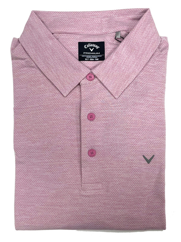 Simple and sophisticated in this essential short sleeve heather jacquard polo from Callaway. A heathered solid color with a woven jacquard pattern to elevate its look. Crafted with Callaway's SwingTech technology to move with you with performance and ventilated to keep you cool and comfortable.