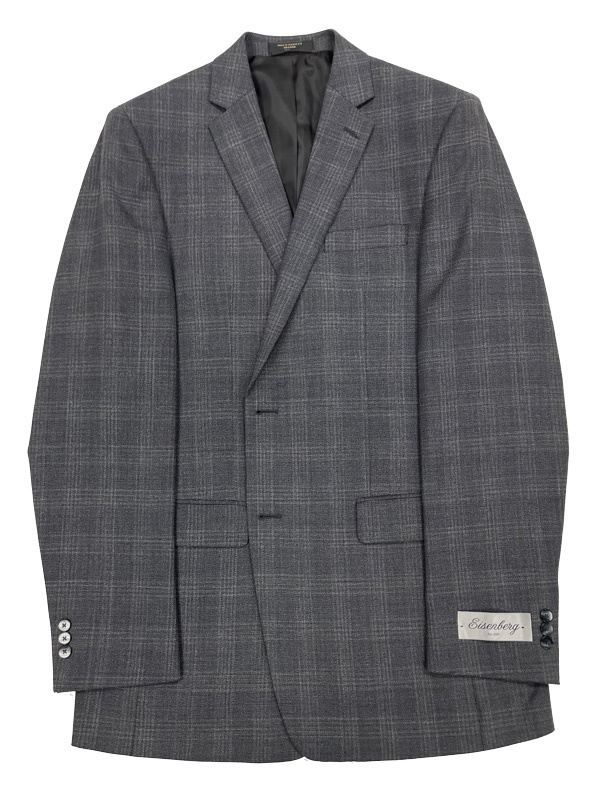 A beautiful new wool sport coat from Eisenberg that is essential for every man's wardrobe. A grey glen plaid design that never goes out of style. The Sanford is a center back vent design.