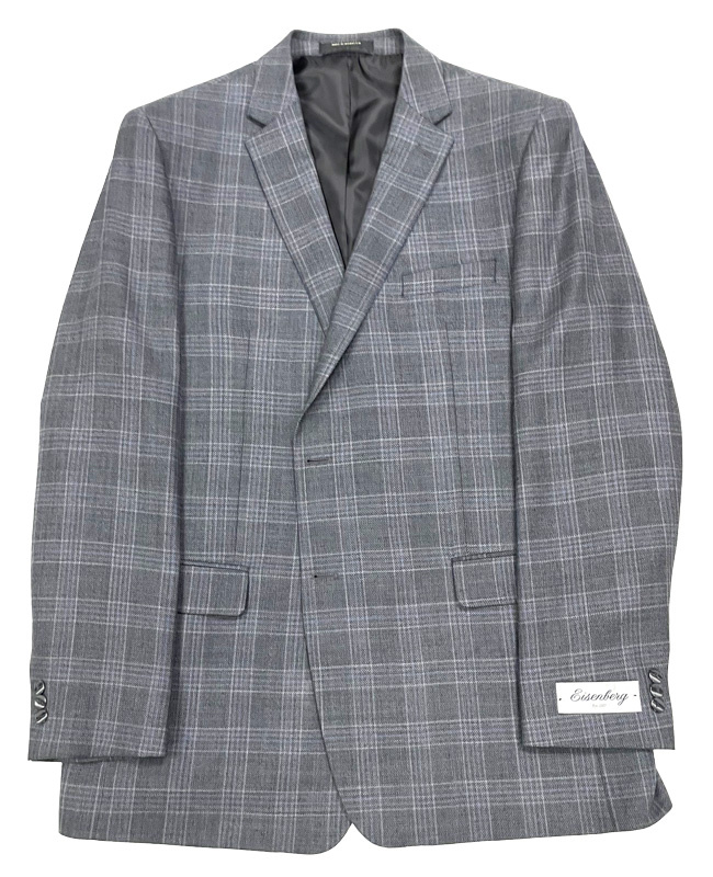 A beautiful new wool sport coat from Eisenberg that is essential for every man's wardrobe. A charcoal grey windowpane design that never goes out of style. The Sanford is a center back vent design.