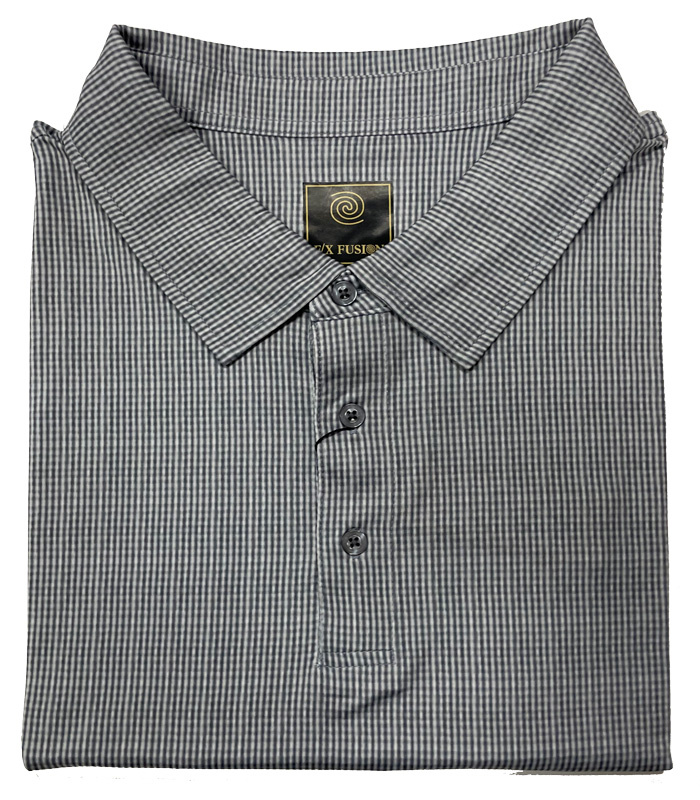 It is not summer without gingham and this new short sleeve polo from F/X Fusion, features a classic gingham design in micro form. Crafted from a polyester and spandex blend so you are comfortable and looking your best all day long.