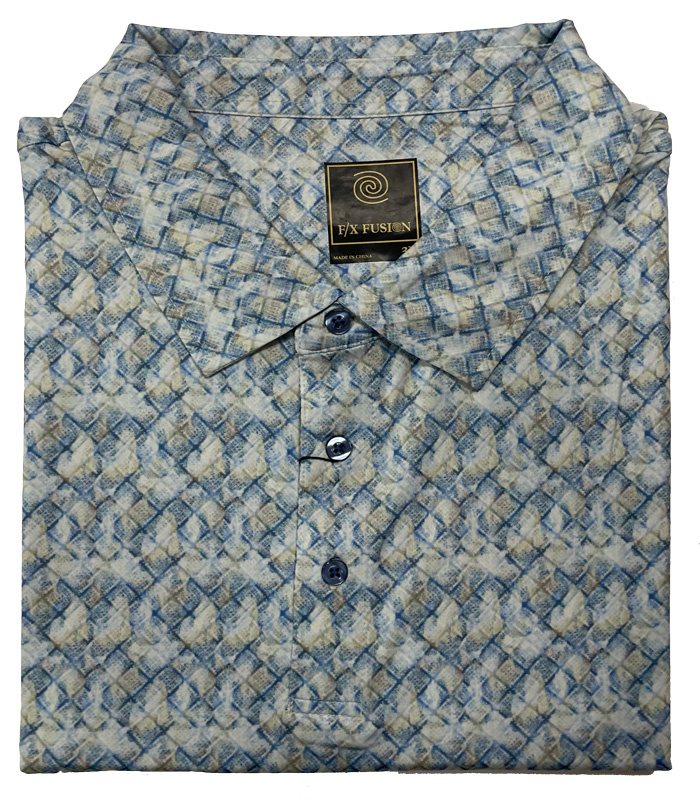 A great new short sleeve polo from F/X Fusion, featuring a heathered check print design. It is subtle but sophisticated in shades of blue, khaki and white, a perfect look with jeans or khaki shorts. Crafted from a polyester and spandex blend so you are comfortable and looking your best all day long.