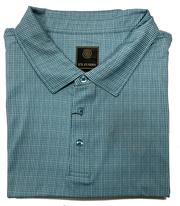 It is not summer without gingham and this new short sleeve polo from F/X Fusion, features a classic gingham design in micro form. Crafted from a polyester and spandex blend so you are comfortable and looking your best all day long.