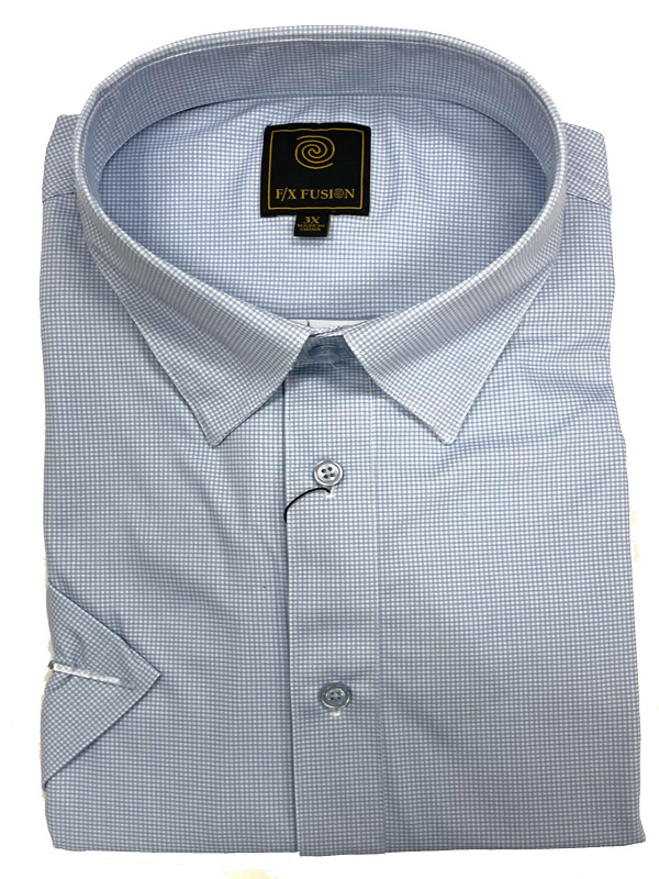 From F/X Fusion comes this short sleeve under button collar shirt with a micro check design done in shades of blue. Crafted in a polyester blend for an easy care/non-iron fabric that keeps you looking your best.