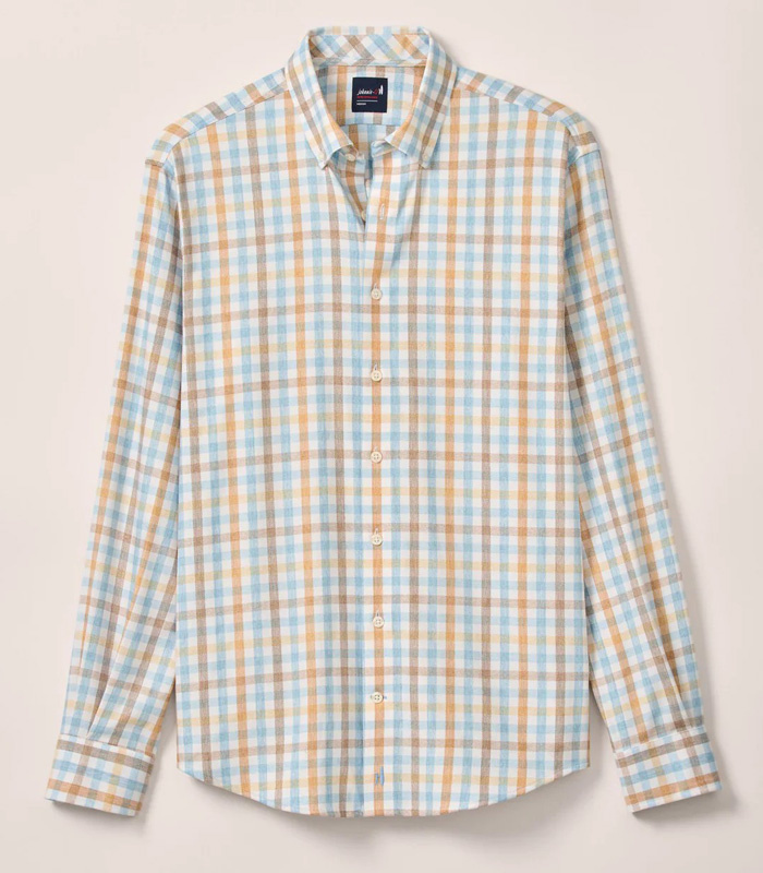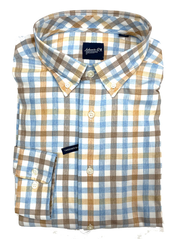 The Callum shirt from Johnnie-O, is a twill long sleeve button down collar shirt. This line features stretch, to move with you, and moisture wicking properties to keep you cool and comfortable. A great feature is the Tweener button-between the 2nd and 3rd button- that allows you to customize how much to leave open at the top. Not too much, not to little but just right. This shirt features a beautiful multi color medium check design.