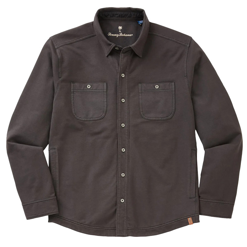 Looking for the perfect layering piece for fall? Reach for this Ben & Terry shirt jacket from Tommy Bahama. Warm and comfortable, it is crafted from a soft French terry cotton blend that has a touch of stretch for ease of movement. A great outdoor rugged look with the button front closure, shirt tail hem, and double button thru chest pockets.