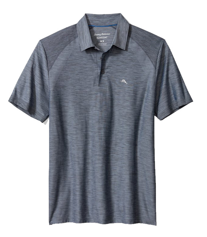 • Technology meets style with this new version of the Palm Coast polo from Tommy Bahama. The Pro consists not only of their IslandZone performance fabric that wicks moisture away but a new ventilation detail that enhances airflow to keep you cool and comfortable.   With a a distinctive jacquard stitch detail, cling free drape, this polo is wrinkle resistant making it perfect for travel.